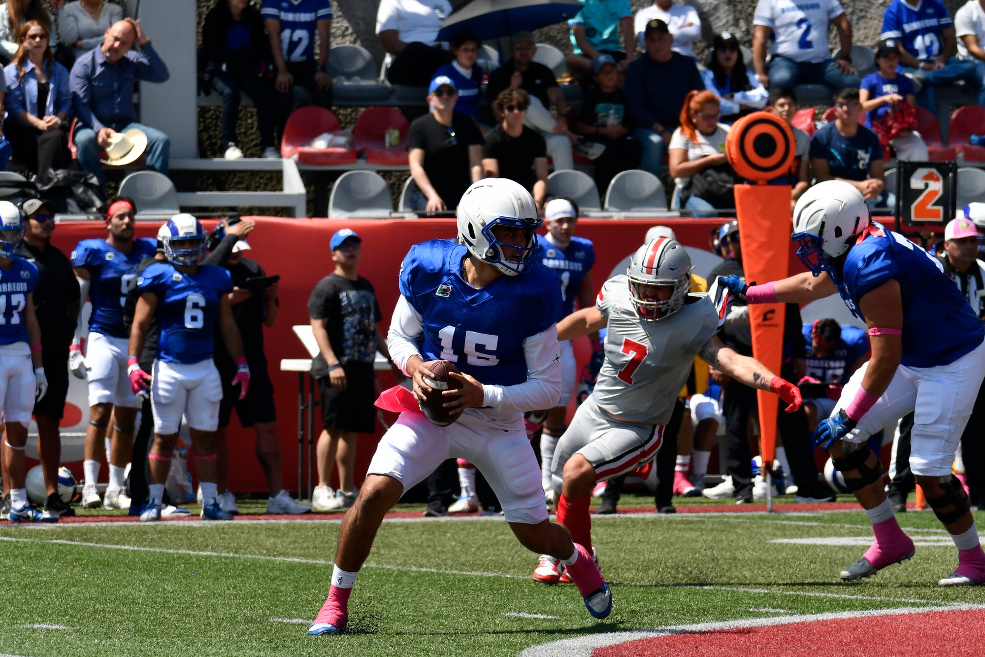 Borregos Puebla se mantiene sin derrota al superar fácilmente a Pumas Acatlán 42-10 en el Cráter Azul, la visita inauguró el score con anotación de Bruno Quijano WR #88, sin embargo, no pudieron hacer mucho más, los comandados por el HC Erick Fischer demuestran que son uno de los grande s favoritos para llegar a pelear el titulo nacional: Fernando Mayen, Luis Serrano en dos ocasiones, Pick Six de Alonso Barrenechea, Eduardo Mayen y Emilio Cerezo con las anotaciones.